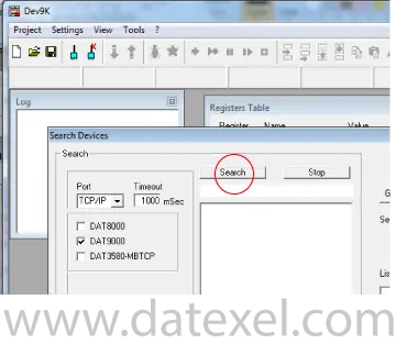 Connect Cat 5 crossover cable to the RJ45 connection which is next to the Power Supply on the DAT9000 and the PC.